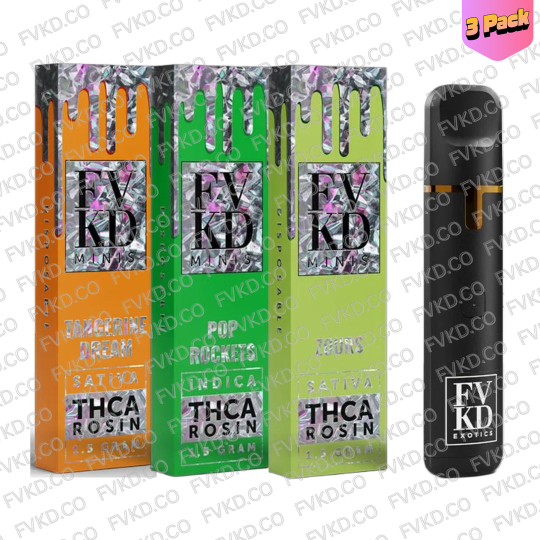 FVKD THC-A Rosin Disposable, a powerhouse of pure THC-A combined with the aromatic richness of cannabis-derived terpenes. This high-quality disposable vape pen packs a punch with its 3.5 grams of THC-A extract, making it one of the most potent options available. The inclusion of cannabis-derived terpenes not only enhances the flavor profile but also adds depth to the overall experience, making each draw a delightful journey through the world of cannabinoids.