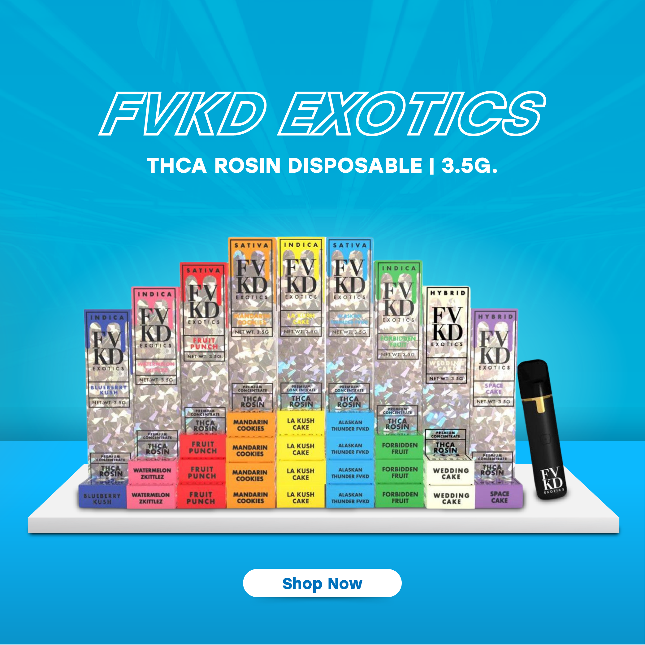 Let’s unravel the details – This exotic blend is not your average disposable. Infused with the enchanting Blue Lotus Extract, it’s a one-of-a-kind experience that takes you to new heights of relaxation. With 3.5 grams in each disposable, FVKD Exotics sets the standard for those who seek a lavish and potent experience. The ceramic coil ensures a seamless and enjoyable draw, allowing you to savor the rich flavors with every inhale.